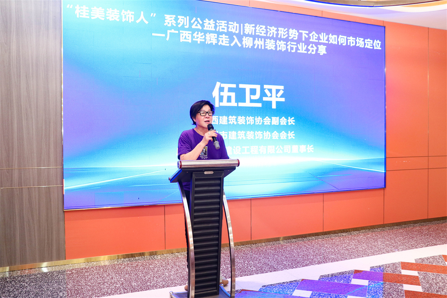 協(xié)會副會長、柳州建筑裝飾協(xié)會會長伍衛(wèi)平在致辭中表示,柳州作為廣西重要的工業(yè)城市,近年來裝飾行業(yè)在城市建設、民生改善和產(chǎn)業(yè)升級中發(fā)揮了積極作用。面對新經(jīng)濟形勢,柳州裝飾企業(yè)需要在設計理念、施工工藝、材料應用等方面不斷創(chuàng)新,提升服務品質(zhì)和市場競爭力。他對廣西建筑裝飾協(xié)會為柳州行業(yè)搭建了寶貴的交流平臺表示感謝,希望通過本次活動促進柳州企業(yè)與區(qū)內(nèi)外優(yōu)秀裝飾企業(yè)加強合作、互學互鑒,共同推動柳州裝飾行業(yè)邁向高質(zhì)量發(fā)展。